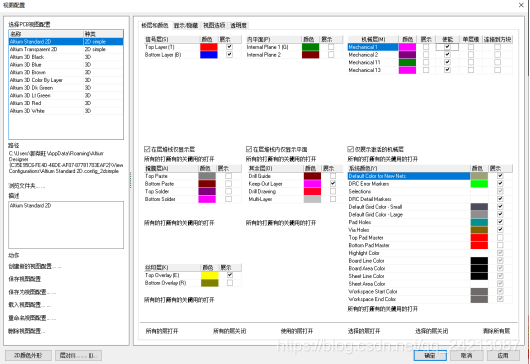 - 在PCB环境中,右击,在弹出的快捷菜单中执行“选项”->“板层颜色”命令,在打开的“视图配置”对话框中关闭没有使用或者不需要的工作层。