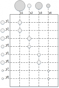 Monge形式的最优传输问题求解困难且具有一定的病态性,但是由于18世纪各种数学定理发展不够成熟,最优传输问题一直没有得到很好的解决。直到1942年Kantorovich成功地解决了此问题,如图所示,Kantorovich形式的最优传输可以描述为:不将每一堆土直接填充到坑中,而是将一堆土分为若干部分然后进行填充。其数学表述如下: