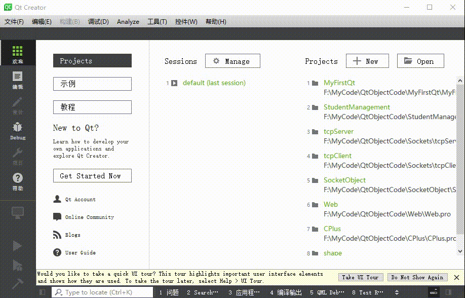 - 使用QtCreator创建的项目目录中不能包含中文和空格