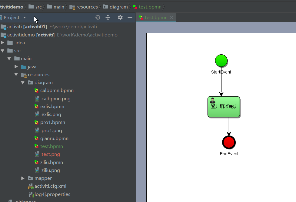1:绘制activity的bpm工作流程图的时候,在name项中填写中文,开始的时候没问题,显示的确是中文,关闭文件再打开发现已经乱码,重启idea效果相同,如图