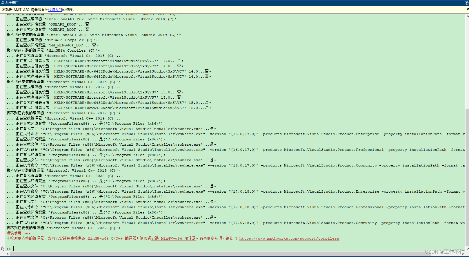 Matlab2022a无法识别vs2019编译器,未检测到支持的编译器,错误使用Mex -setup error cannot find support compiler