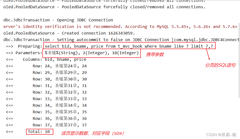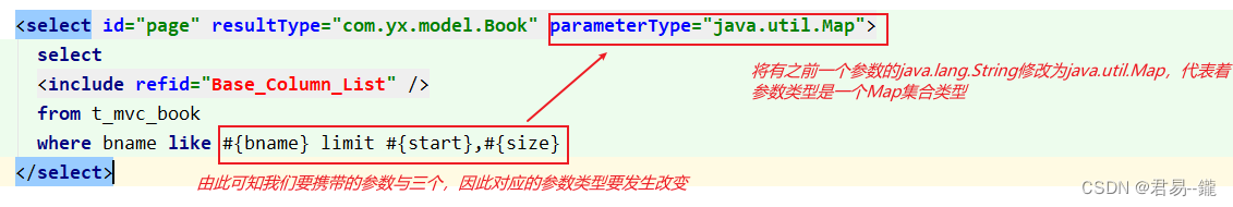 package com.yx.mapper; import com.yx.model.Book; import org.apache.ibatis.annotations.Param; import java.util.List; import java.util.Map; public interface BookMapper { List<Book> page(Map map); }接口类和接口实现类(代码编写)