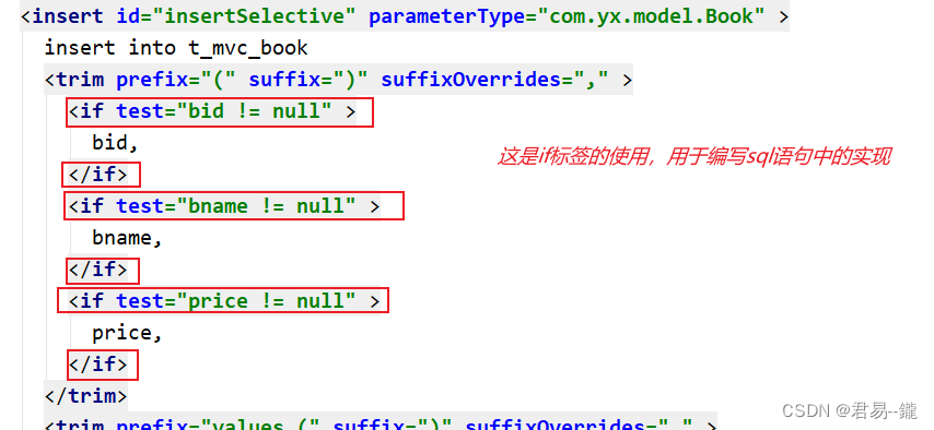 - MyBatis提供了一些标签和函数来实现动态SQL,其中最常用的是if、choose、when、otherwise和foreach标签。通过使用这些标签,我们可以根据条件来动态生成SQL语句的不同部分。