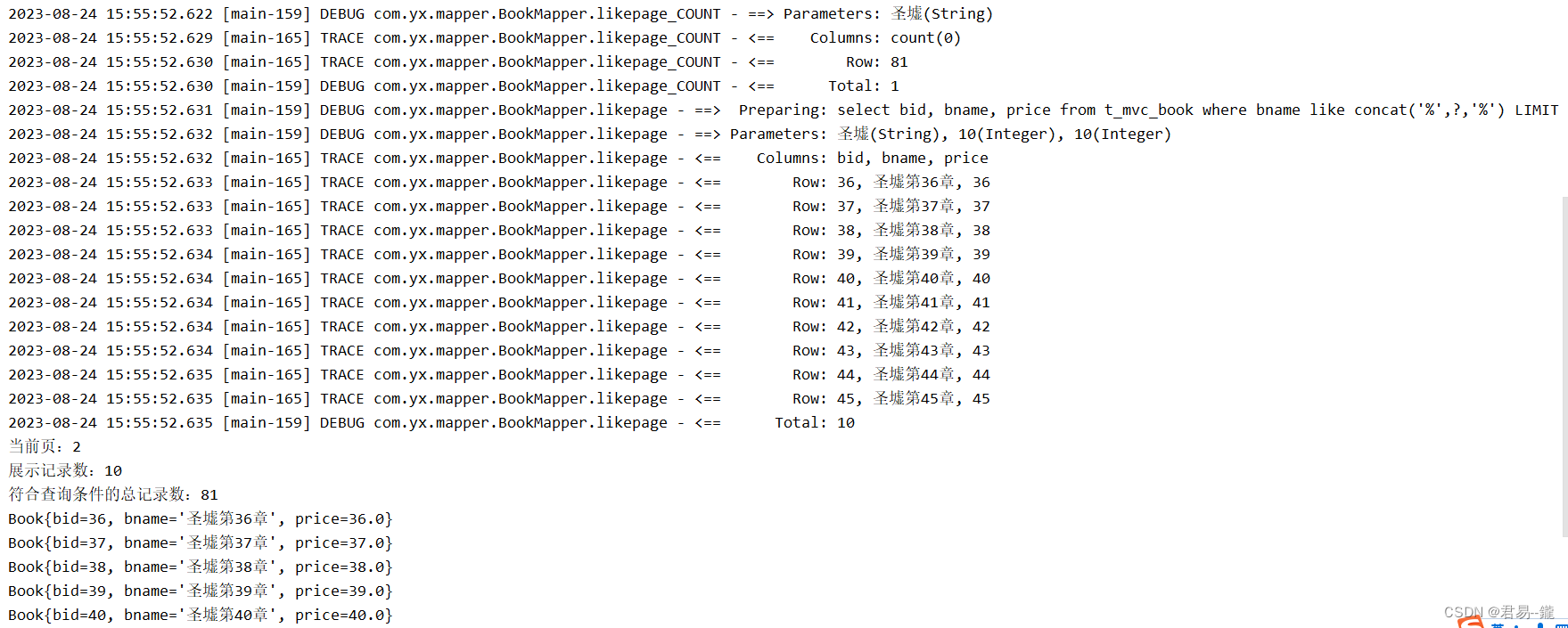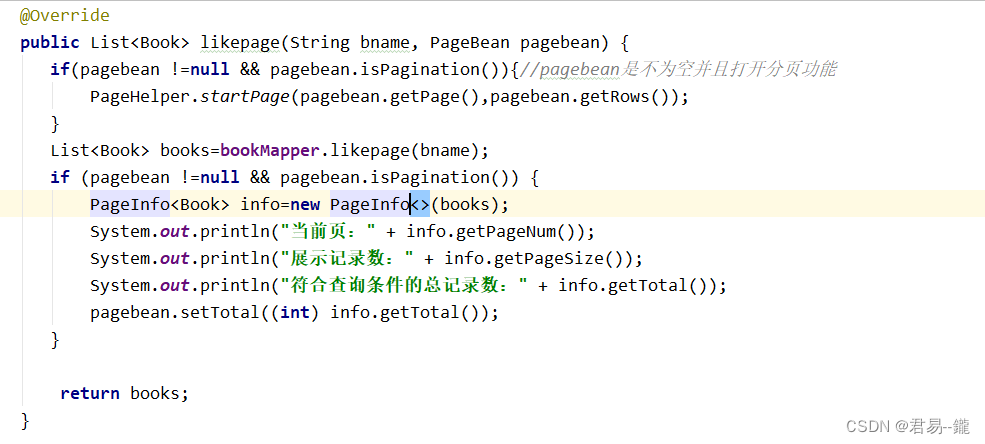 List<Book> books=bookMapper.likepage(bname);
