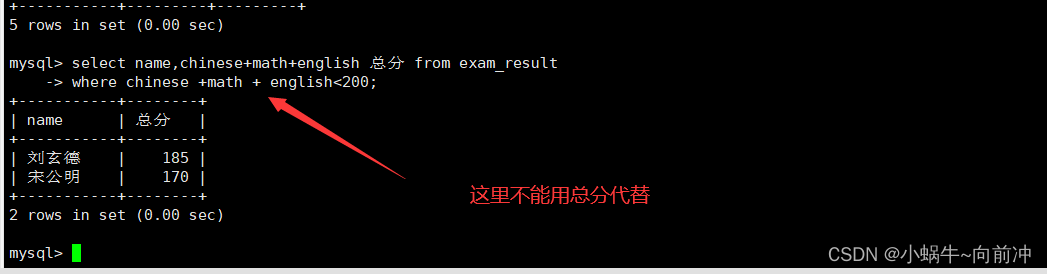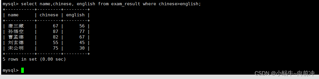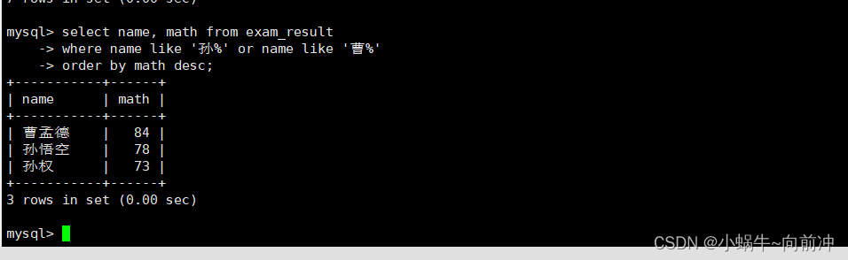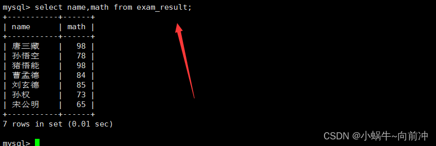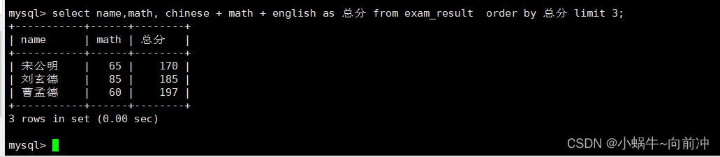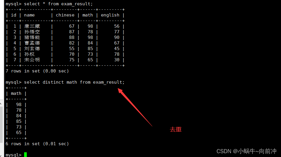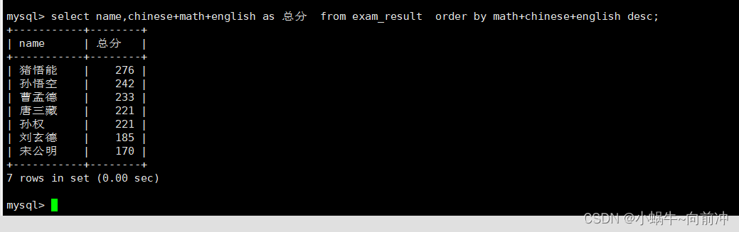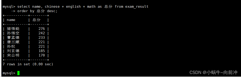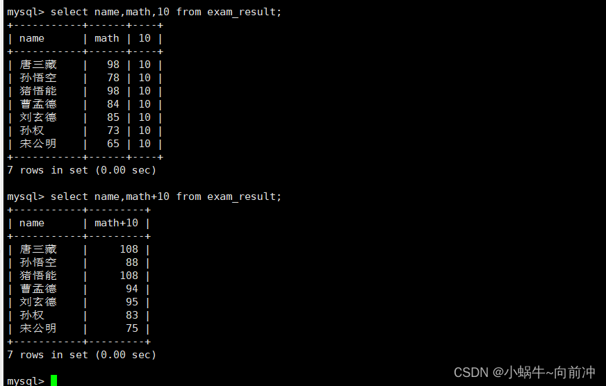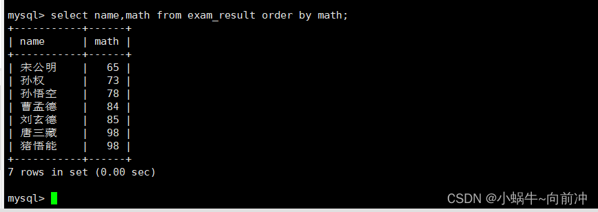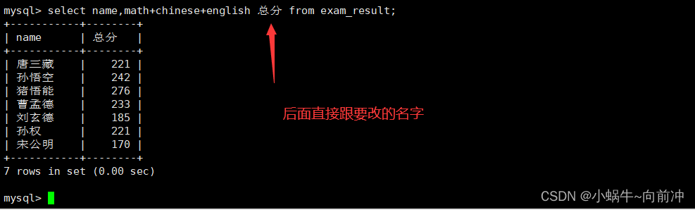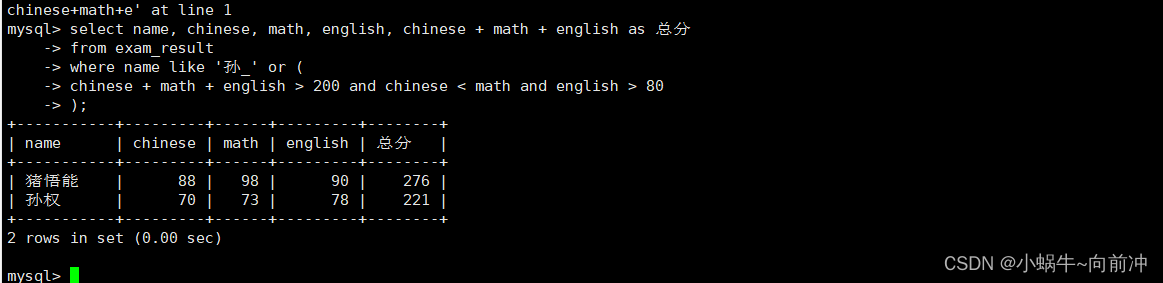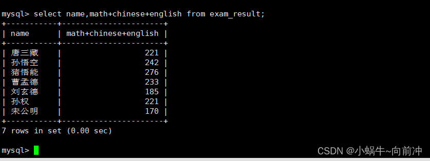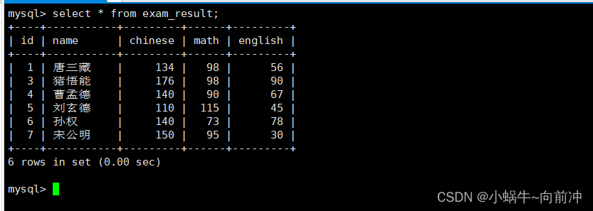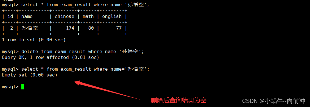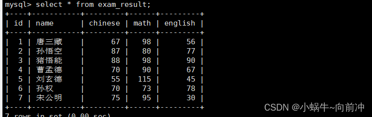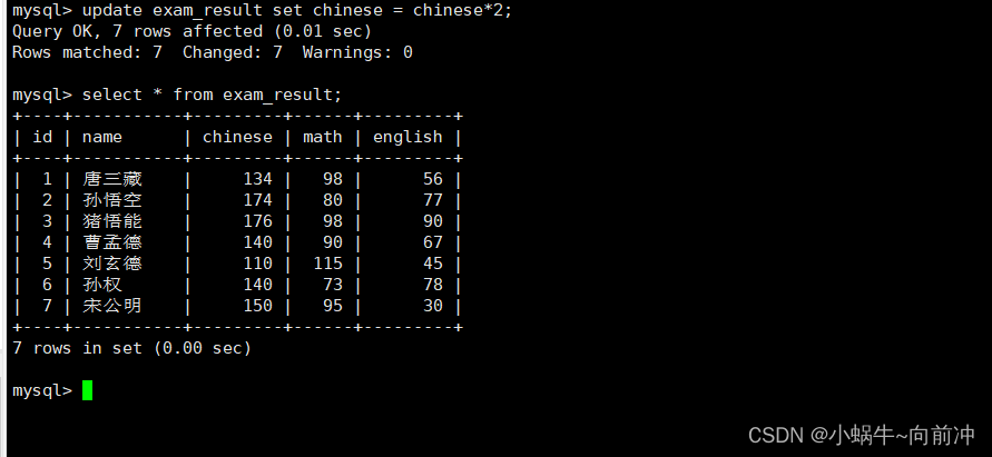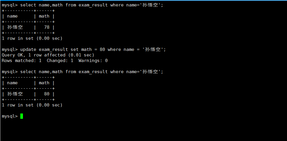 update exam_result set math = 80 where name = '孙悟空';//更新