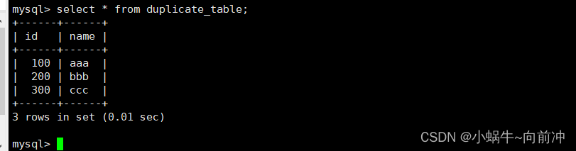 创建一张空表 no_duplicate_table,结构和 duplicate_table 一样