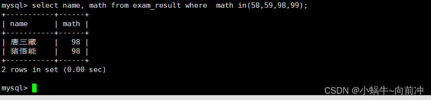 > select name, math from exam_result math where math = 58 or math = 59 or math = 98 or math = 99;