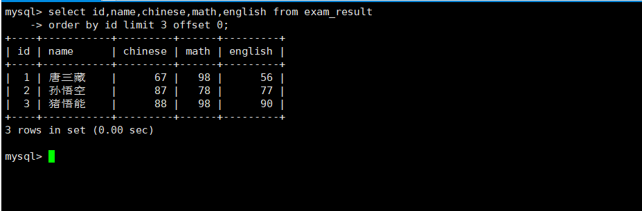 INSERT INTO exam_result (name, chinese, math, english) VALUES