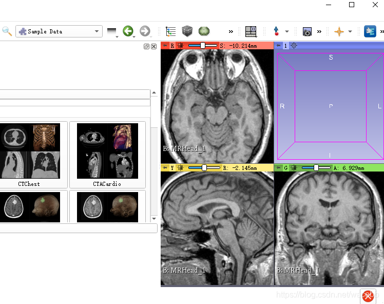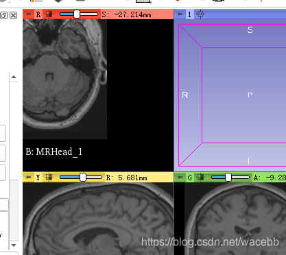 shift + 左键移动 则可以再另两个切片上显示相应位置。