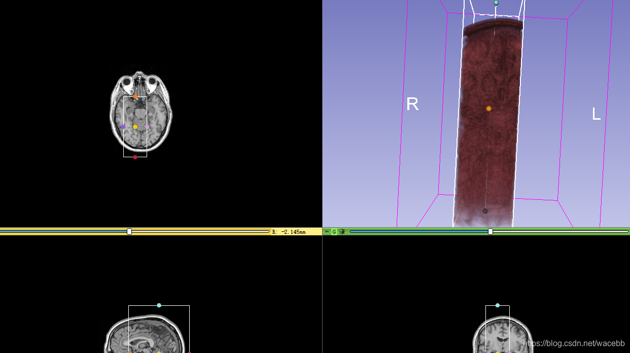 然后,我们通过移动ROI点就可以修改ROI区域,同时3D显示出ROI区域: