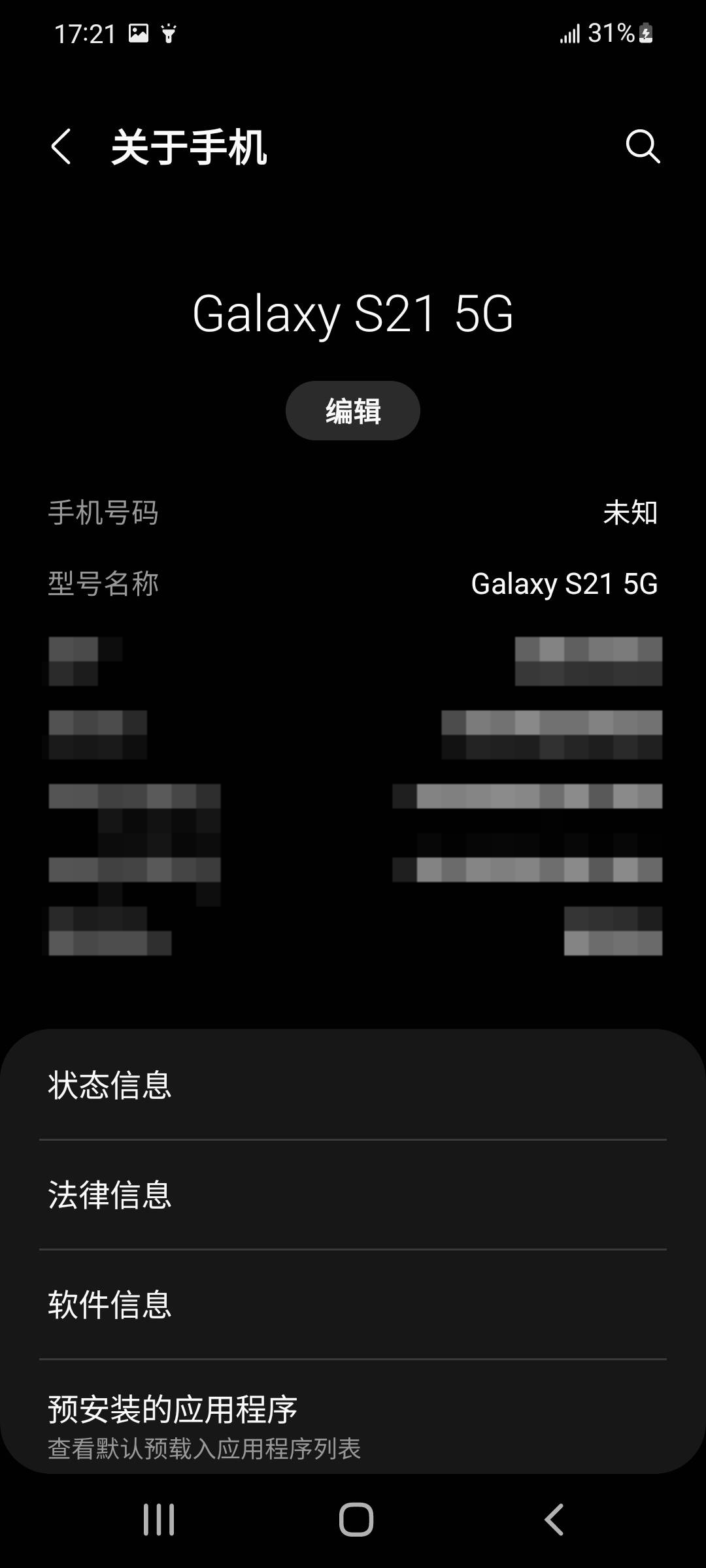 我们这里使用的设备是:三星的Galaxy S21 5G手机