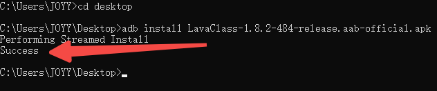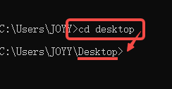 (我们测试包如下,安装包存放在桌面,我们首先得使用cd命令,在cmd中进入到安装包保存路径桌面,再使用代码进行安装包安装。路径:C:\Users\JOYY\Desktop。使用命令install安装)