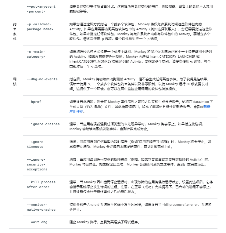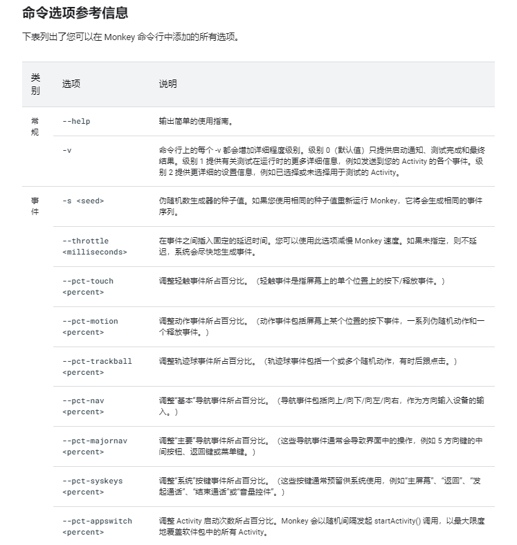 adb shell monkey + 命令选项