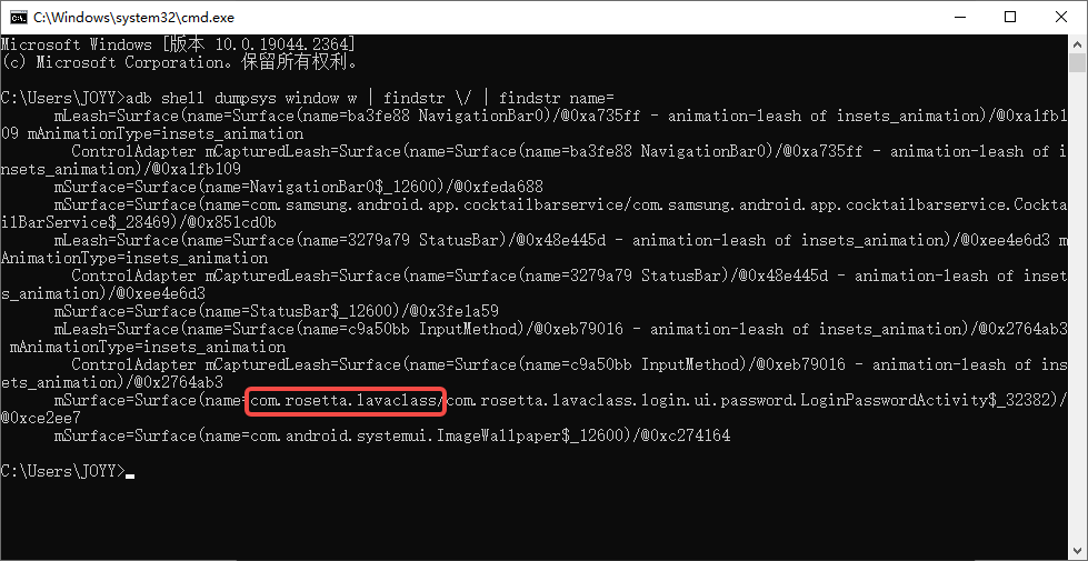 (msurface中的name即是应用的包名:mSurface=Surface(name=com.rosetta.lavaclass)