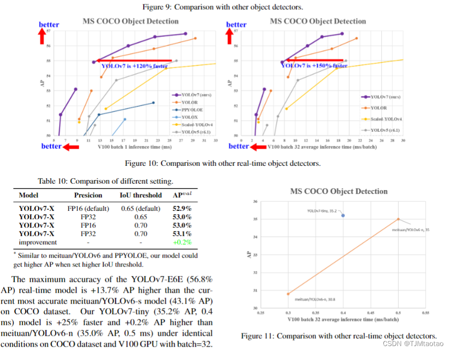 结果表明,与YOLOv4相比,YOLOv7的参数减少了75%,计算量减少了36%,AP增加了1.5%。与目前最先进的YOLOR-CSP相比,YOLOv7的参数减少了43%,计算量减少了15%,AP增加了0.4%。在微小模型的性能上,与YOLOv4-tiny-31相比,YOLOv7tiny的参数减少了39%,计算量减少了49%,但AP保持不变。我们的模型仍然可以有一个更高的AP,同时减少19%的参数数量和33%的计算量。