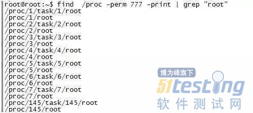 例2.在proc目录下查找权限为777且带有“root”的文件且输出;