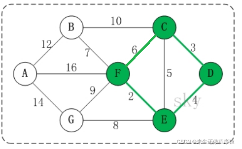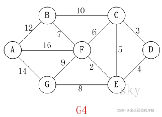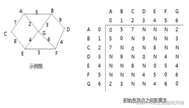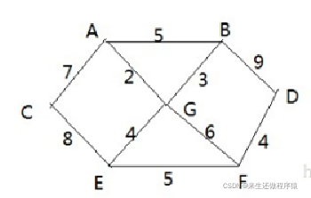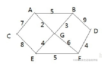 不途径中间顶点A的距离为 N。9<N ,所以更新C-G的距离为9
