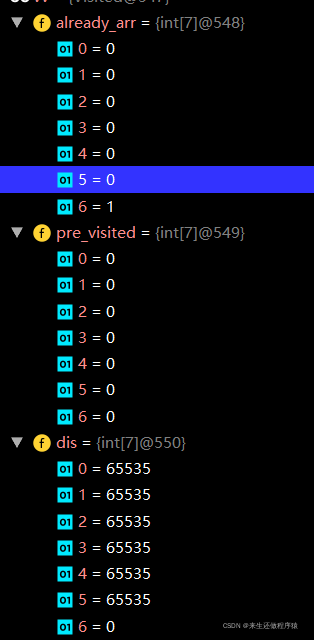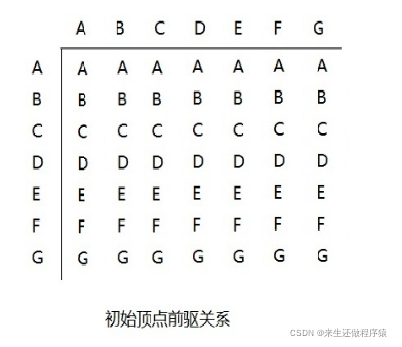 (4)弗洛伊德算法 与 迪杰斯特拉算法的区别:迪杰斯特拉算法通过选定的被访问顶点,求出从出发访问顶点到其他顶点的最短路径;弗洛伊德算法中每一个顶点都是出发访问点,所以需要将每一个顶点看做他被访问顶点,求出从每一个顶点到其顶点的最短路径。