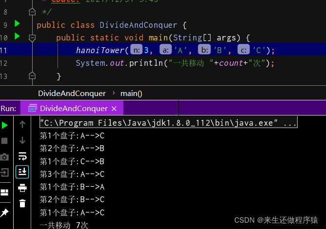最终全都放到了C柱上,由此可知无论多少个盘子都可以分为三步: