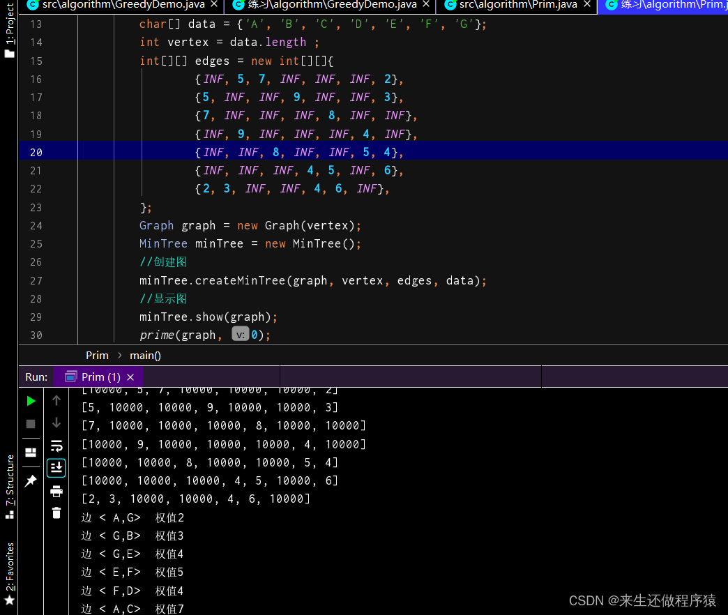 FloydGraph fg = new FloydGraph(maxtrix, vertexs, vertexs.length);