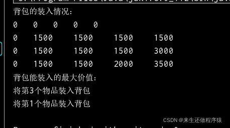 要求达到的目标为装入的背包的总价值最大,并且重量不超出背包的容量, 要求装入的物品不能重复