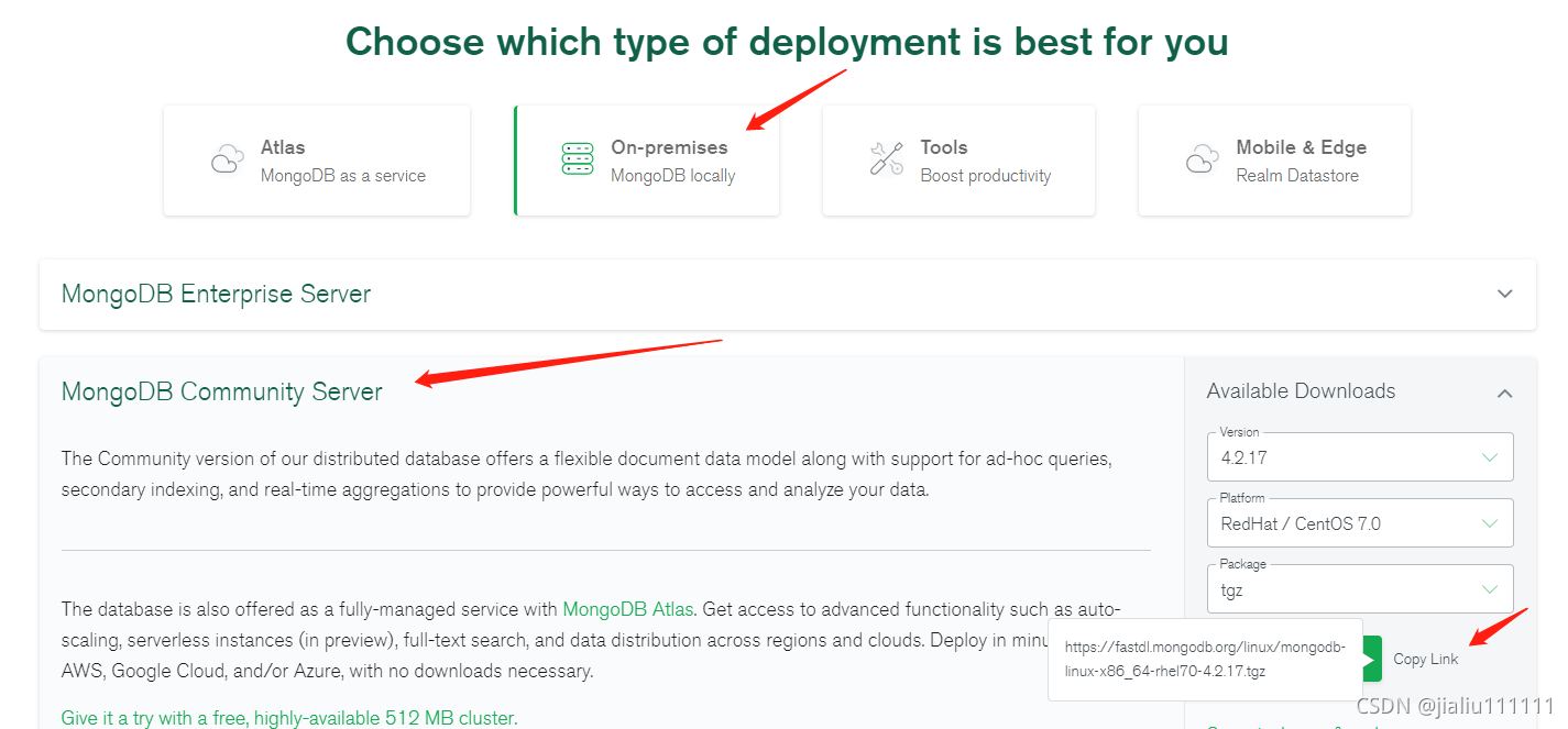 MongoDB 源码下载地址:Try MongoDB Products | MongoDB