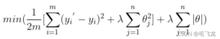 ElasticNet综合了L1正则化项和L2正则化项,以下是它的公式:
