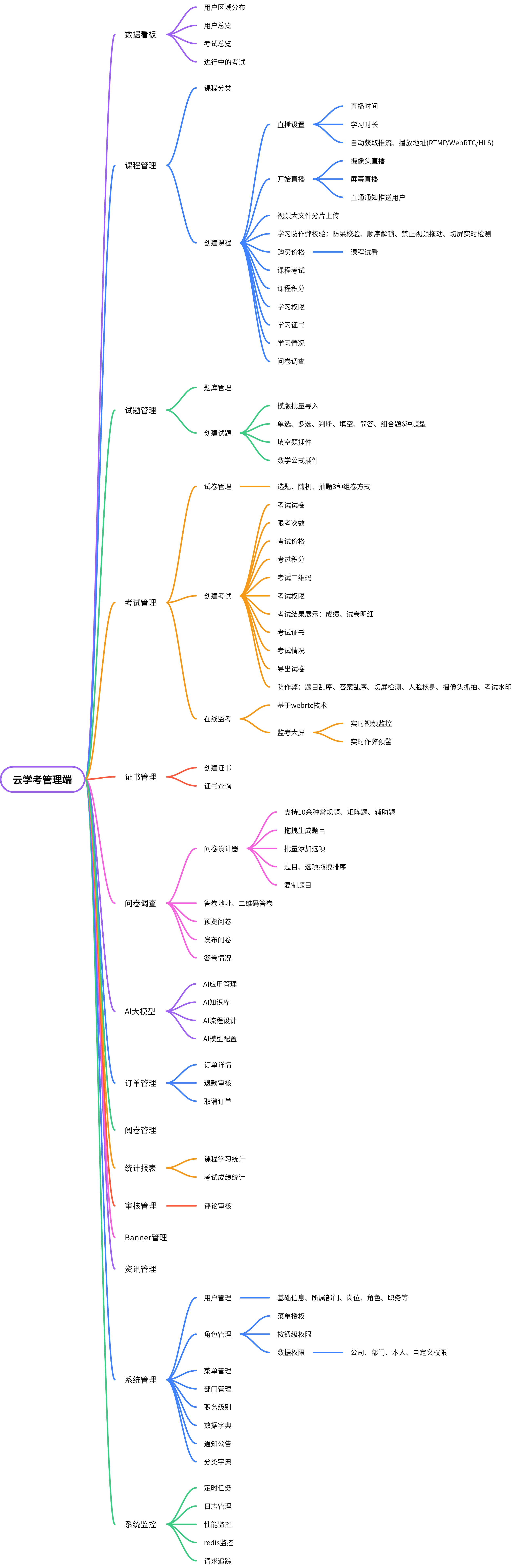云学考学习考试系统是基于springboot+vue3+uniapp开发的在线教育平台。设计美观、前后端分离、部署简单,支持课程购买、课程学习、直播课程、考试付费、在线考试、在线练习、问卷调查、监考大屏、AI大模型、AI知识库、AI流程编排。移动端使用uniapp开发,已上线小程序、h5、android、IOS。android app已上架华为、腾讯、小米、荣耀、OPPO应用商店。
