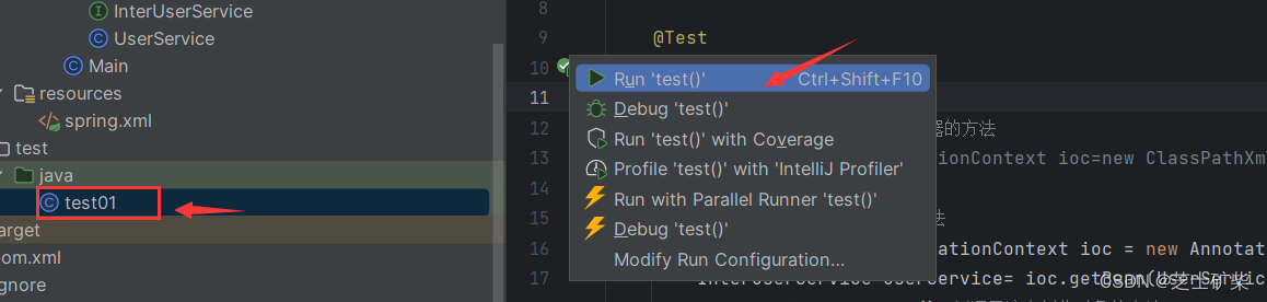 修改测试类test01中的内容
