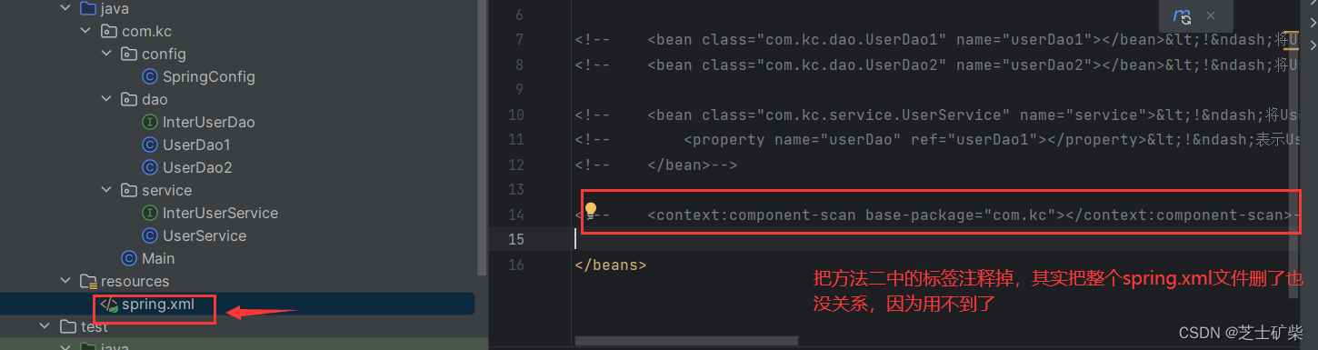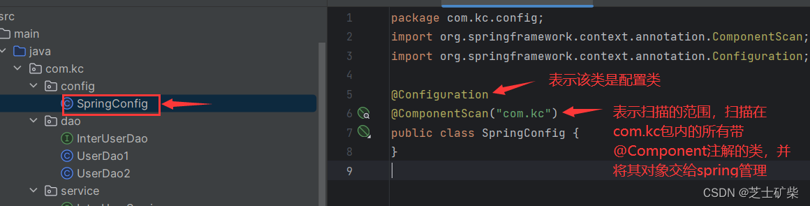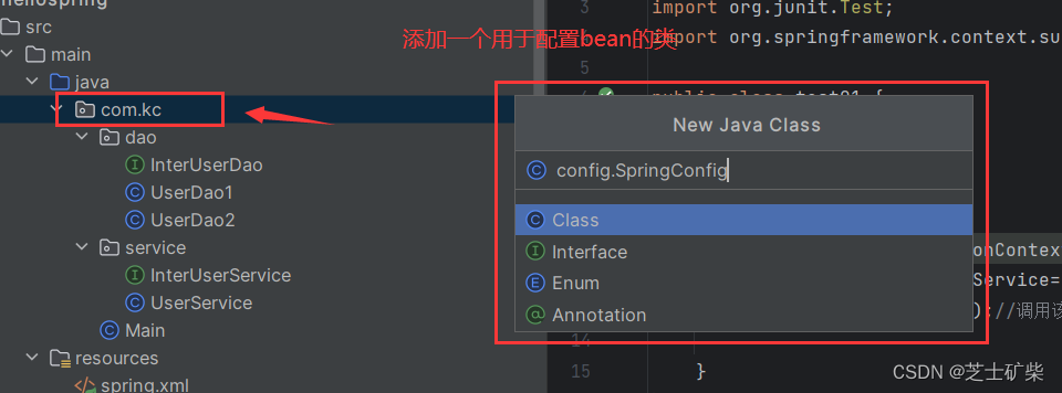 在包com.kc包下添加一个类作为配置类