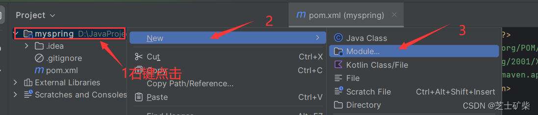 右键项目名,创建一个Module