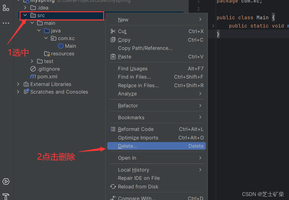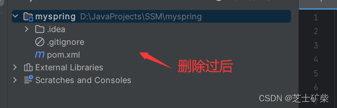 找到src文件夹,将其删除(不需要这个,因为下面我们要创建Module)