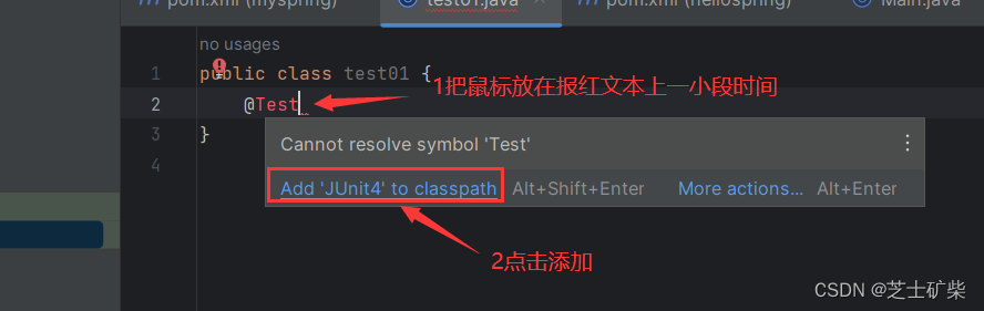 在这个测试类中添加一个@Test注解