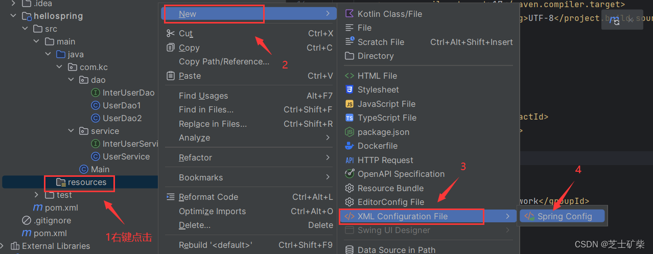 在resources文件夹下添加一个xml文件(这个Spring Config选项只有在上一步成功添加spring-context依赖后才会出现)