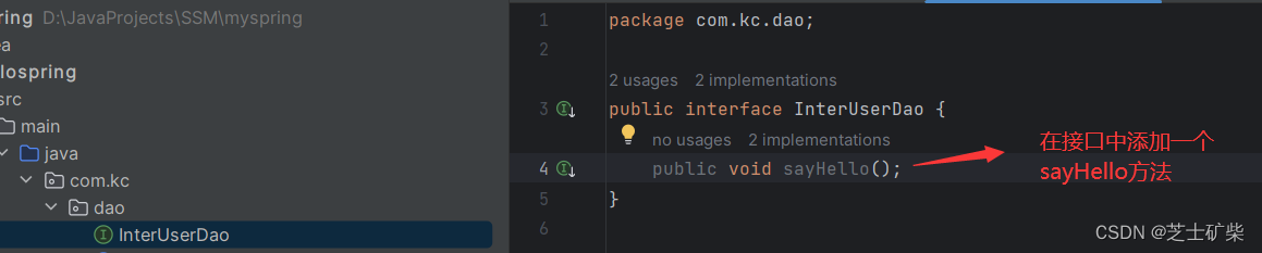 下面将添加测试要用的接口和其实现类