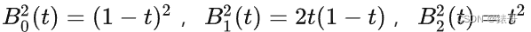 而我们每个顶点前面的系数k,就是伯恩斯坦多项式。例如二阶贝塞尔曲线对应的伯恩斯坦多项式为