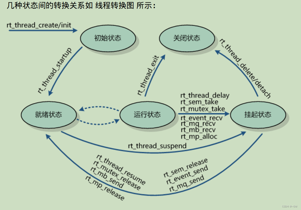 RT_Thread系统中的每一个线程都有多种运行状态,他们之间的转换关系如下图所示,从运行态变成阻塞态、或者从阻塞态变成就绪态,这些线程状态是怎么迁移的呢?