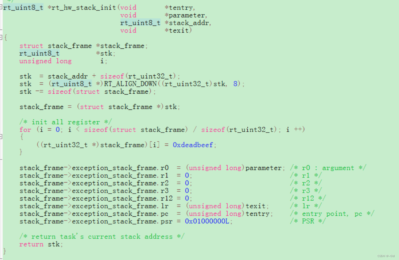 4、构造栈内容(线程控制块结构体的成员)