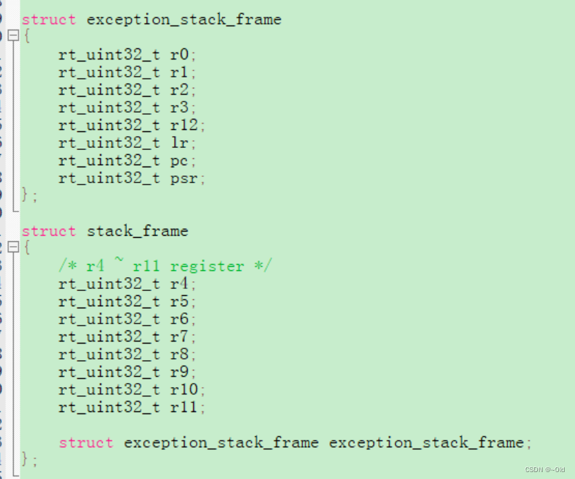 可以使用两种方法提供线程栈:静态分配和动态分配。栈的大小通常由用户定义,如下使用全局数组定义一个静态栈,大小为512字节。