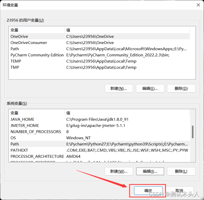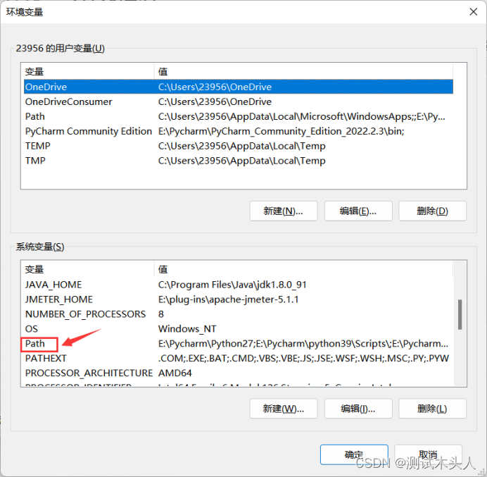 5.在“系统变量”中选择“Path”,点击“编辑”