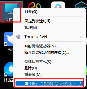 2.去桌面找到此电脑,鼠标右击此电脑,点击属性