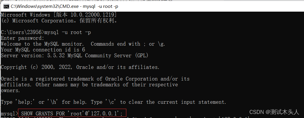 解决方法:SHOW GRANTS FOR 'root'@'127.0.0.1';