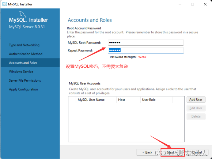 11. 这里需要设置MySQL的密码,设置完了直接点击“Next”
