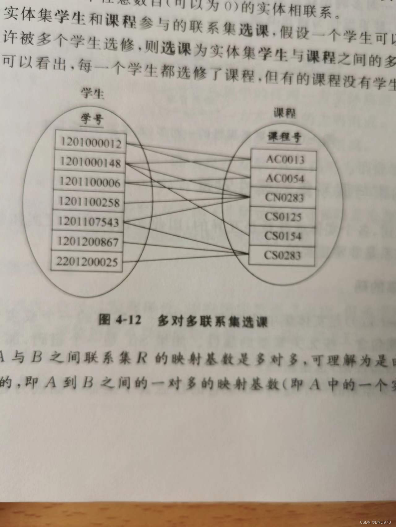 多对多 :A中的一个实体可以同B中任意数目的实体相联系,B中的一个实体也可以同A中任意数目的实体相联系
