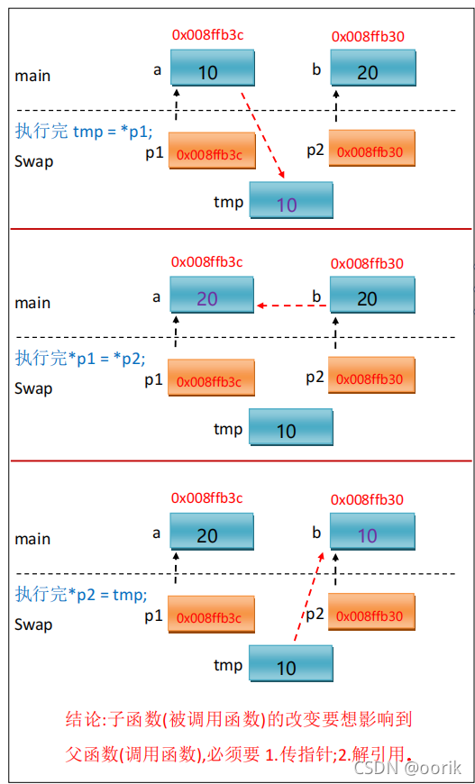 前言:我们在初学c语言时都会遇到的一个题目,那就是交换两个数字的大小,我们需要定义两个变量保存两个值,再定义一个temp进行中间值保存int temp=0;int a=10;int b=20;temp=a;a=b;b=temp;那么在后面我们接触到了指针,我们该如何使用指针进行两个数的交换呢?一、指针是什么通过地址能找到所需的变量单元,我们可以说,地址指向该变量单元。指针就是地址。指针(地址