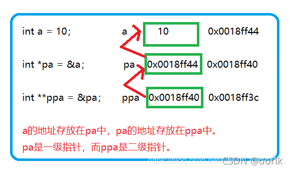 指针变量也是变量,是变量就有地址,那指针变量的地址存放在哪里? 这就是二级指针 。