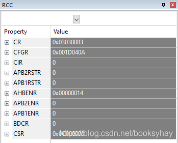 进入调试模式后,Peripheral菜单中,可以显示外设寄存器的值: