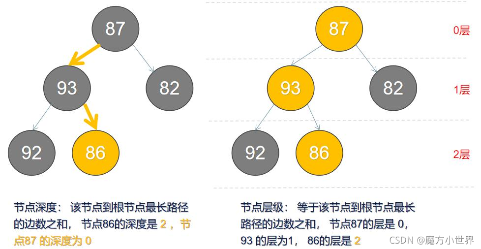 | Depth | 深度 | 根节点到这个节点经过的边的数量 |