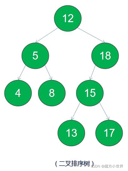 4)二叉搜索树 ——又称二叉查找树、二叉排序树(Binary Sort Tree)。它是一颗空树或是满足下列性质的二叉树:(右边>=根>=左边)