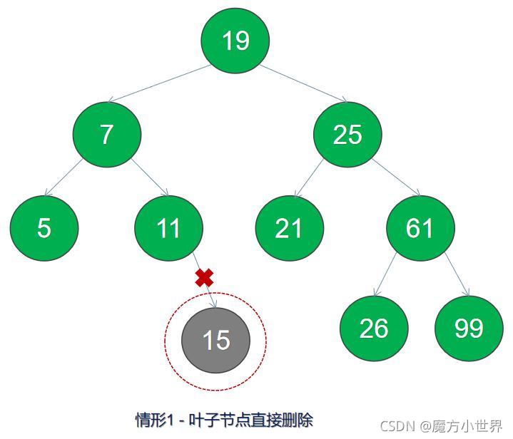 1.删除节点不存在左右子节点,即为叶子节点,直接删除